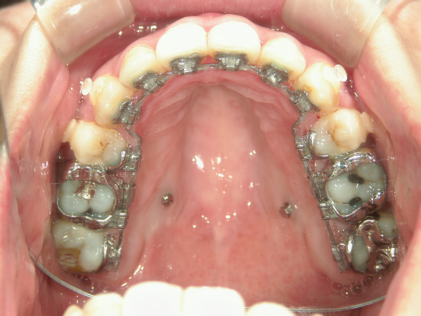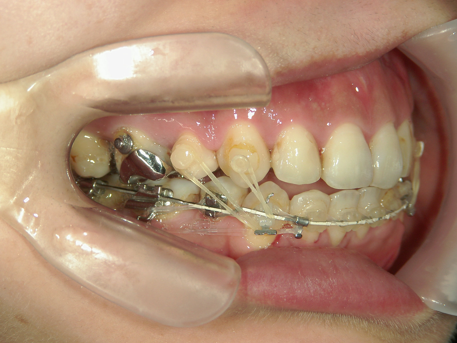②ミニインプラントを併用し、歯根を移動させ、
