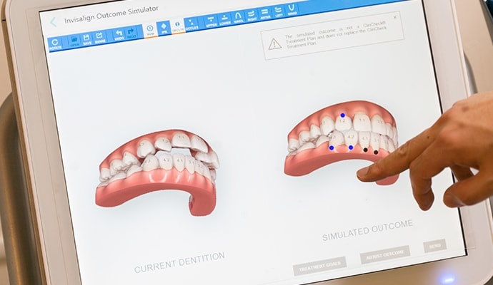 また、シリコン印象材を使用した場合よりも精密に測定することができ、より精度の高いマウスピースをつくることができます。さらに、クリンチェックと呼ばれる治療のシミュレーションデータも早期に作成でき、実際に歯がどのように動いていくのか、最終的にどんな歯並びを目指すのか、患者様に3Dシミュレーションをお見せしなから分かりやすくご説明することが可能です。最終的な歯並びのゴールに対する明確なイメージを持てるため、治療へのモチベーションアップにもつながります。